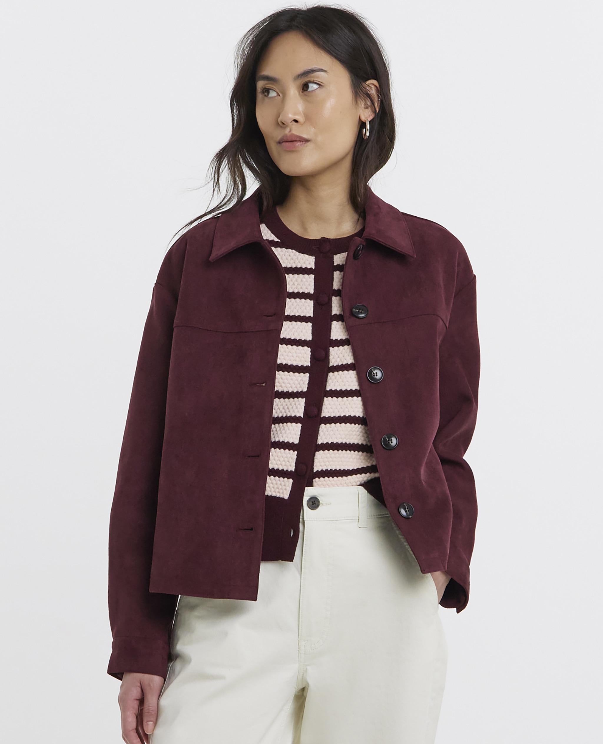 For the most versatile layer, look for a cropped jacket in soft suede, ponte or woven cotton. Adding the perfect finishing touch to almost any spring outfit, it’ll dress up denim or sit beautifully in casual styles and easy-wear weekend looks.