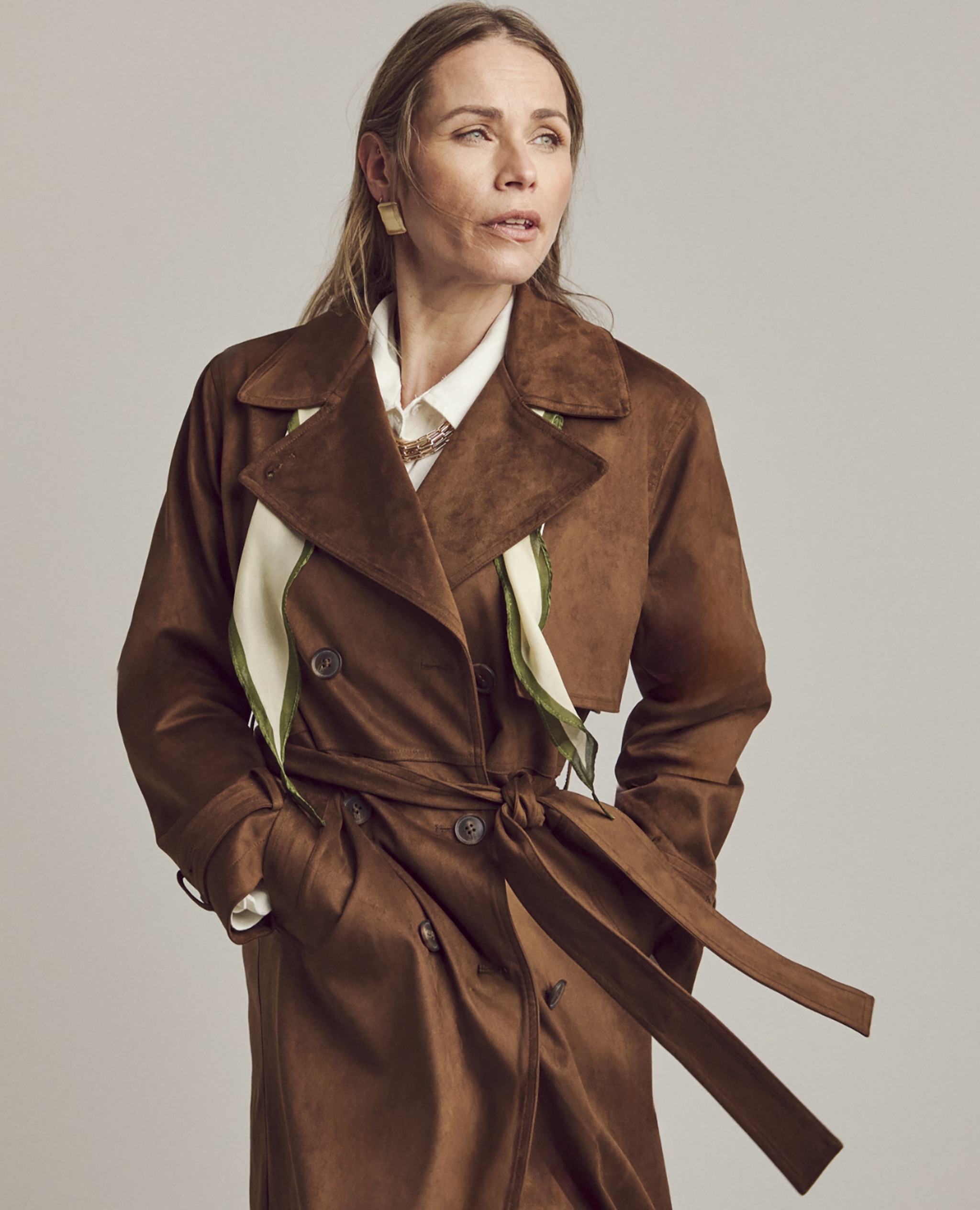 If you love to define your waist, a belted style or a nipped-in blazer will effortlessly give you that beautiful hourglass shape. If you prefer a little more coverage, a longline coat creates an elegant, streamlined silhouette without feeling heavy.