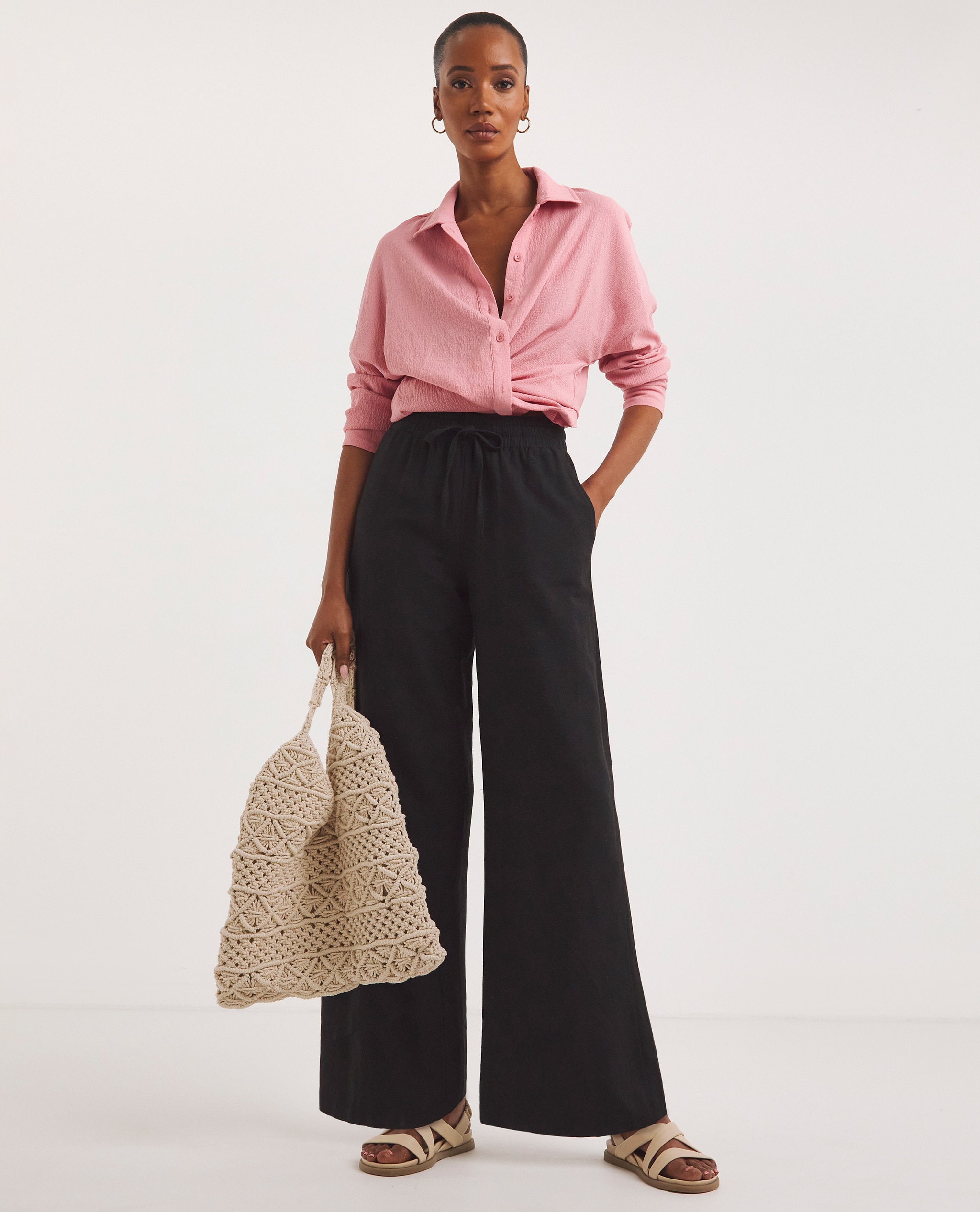 A wide leg or relaxed fit pair works brilliantly as a beach cover-up worn straight over a swimsuit. Simply slip them on with flat sandals and a woven bag for an easy, pulled-together look that takes you from the sun lounger to the beach bar.