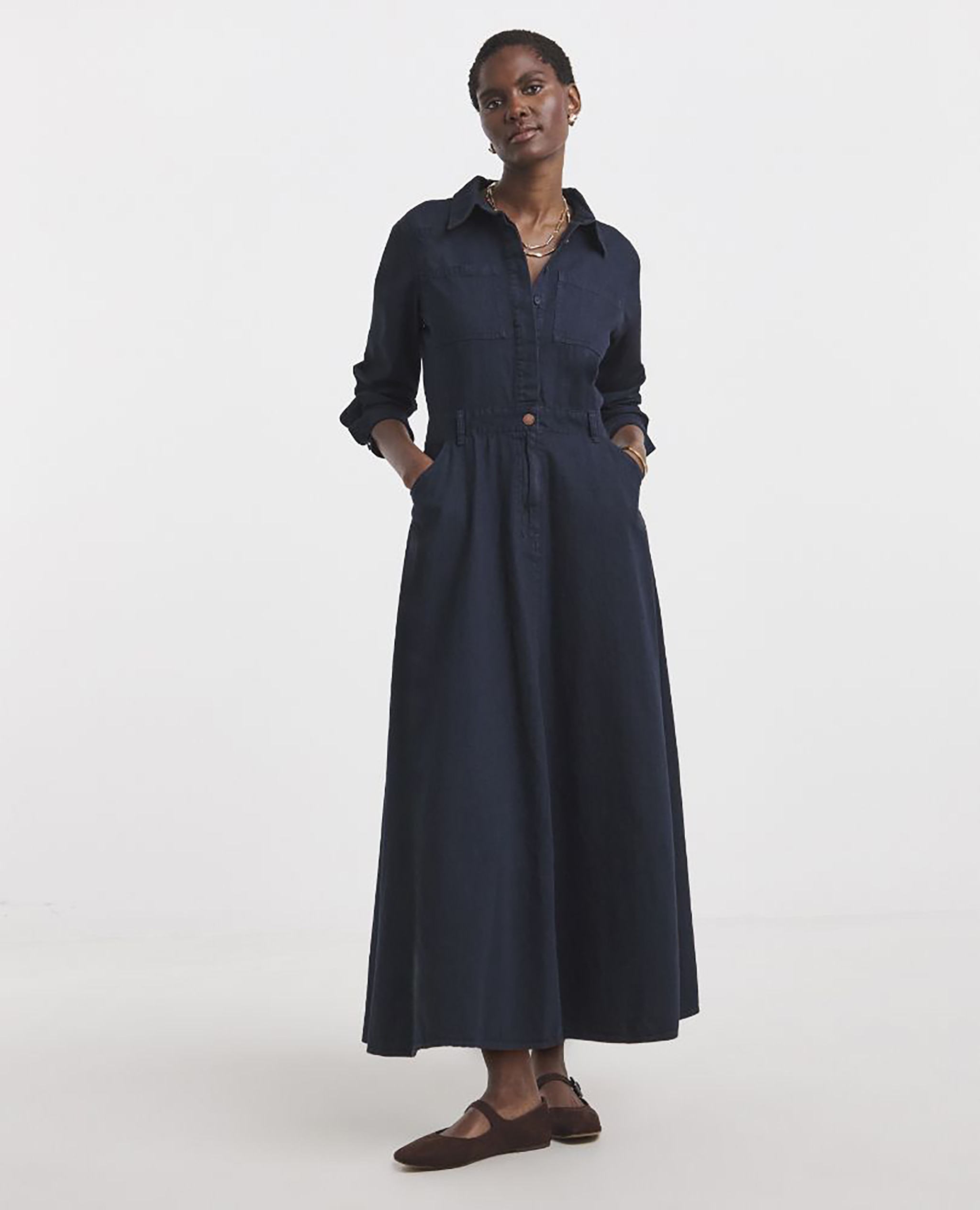 Elegant midi lengths are another reliable choice, as they skim the body without clinging and work across a wide range of shapes and heights. The golden rule is to look for tailored but comfortable fits: clothes that have been cut with shape in mind but still allow you to move freely and feel relaxed throughout the day.