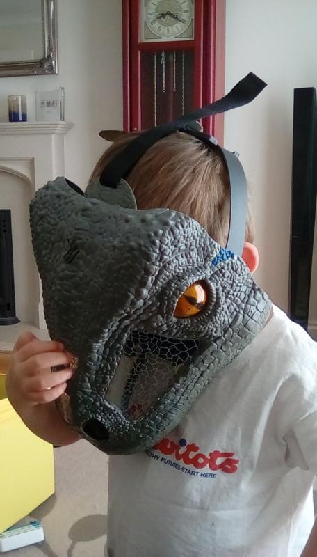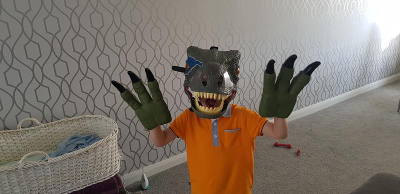 The mask is huge but the details on it are unbelievable, the skin texture, the teeth and finally the sound! My three-year-old son ...Nice looking mask for a Dino loving kid!