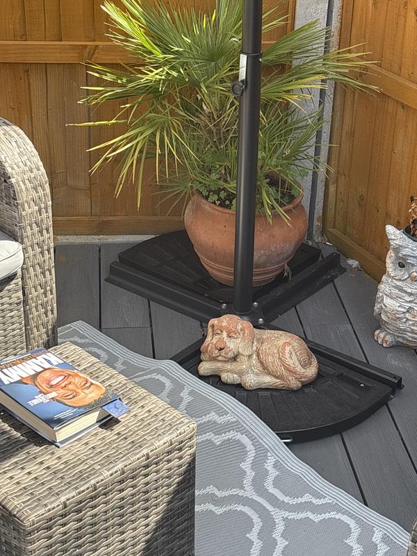 We bought the cantilever umbrella and as our garden can get windy when the tide changes then weights were needed. These fit the ba...