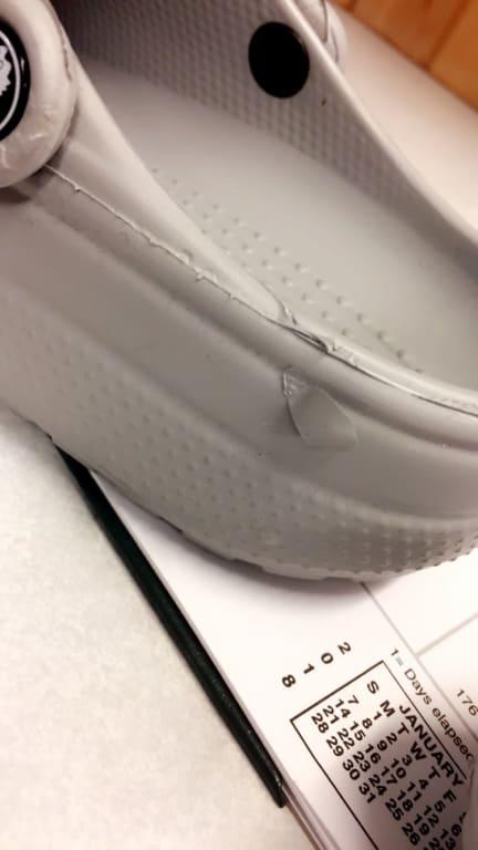I received them on 6-9, they're fraying, grey lines on the top of the left foot, the heel is peeling, the holes look like a 2 year...We are committed to authentic customer feedback on our products. Our reviews are moderated and verified as authentic by our independent third party, Bazaarvoice.