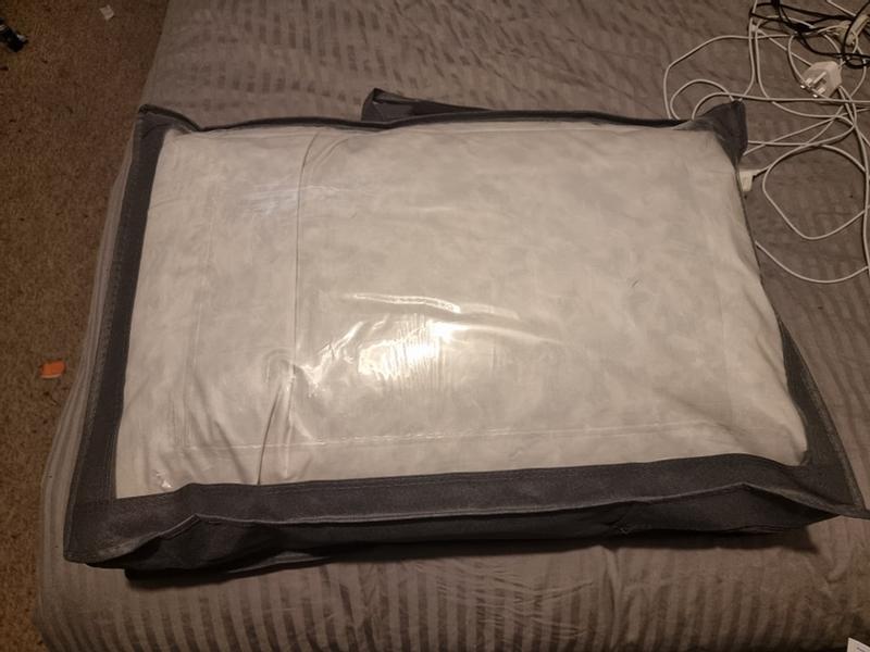 Used pillows with human or animal hair on them and no cardboard inner to say what the product is.Bad Odour