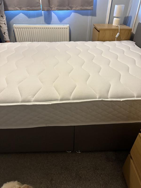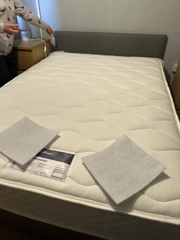 Lovely mattress very comfortable. There are four places on the divan base where it looks like tears or open seams, but we hope bec...Medium kingsize silentnight tranquility1000 bed