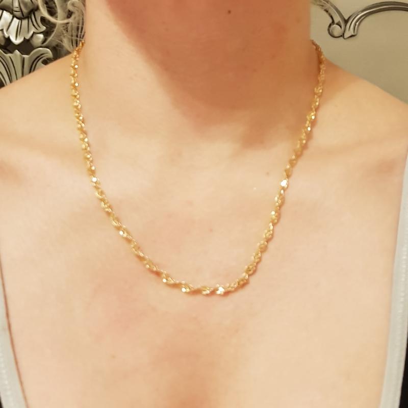 I am thoroughly delighted with this elegant rope chain. It come nicely presented in lovely box and I impressed from the moment I o...Gold chain