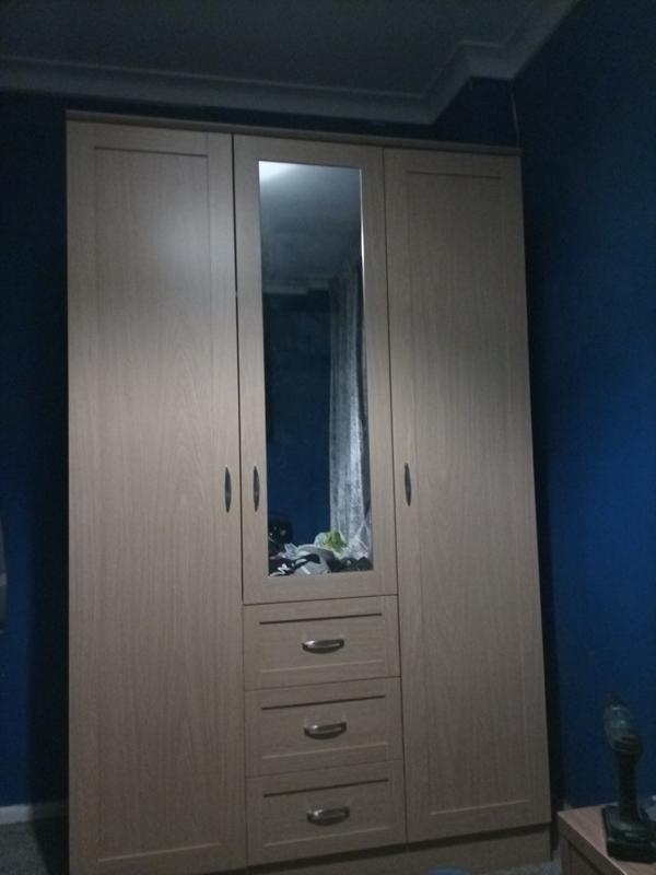 Bought this wardrobe, opened the first two boxes, one corner damaged badly and one of the doors were warped, didn't even bother to...Lovely wardrobe with plenty of space