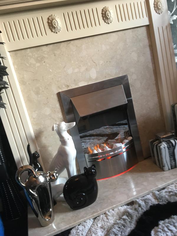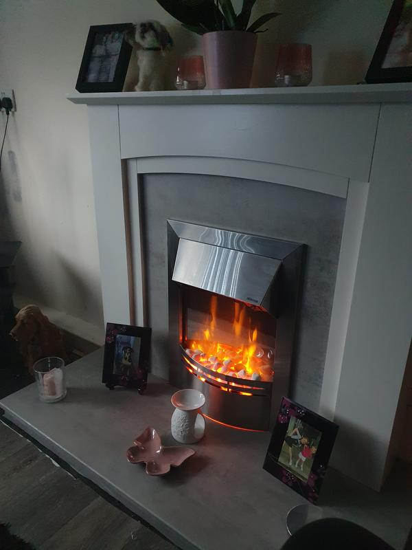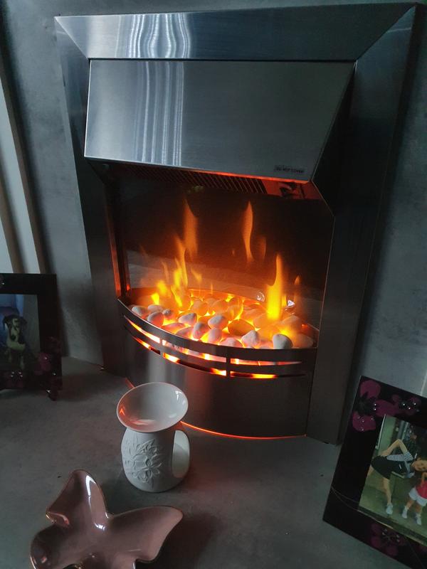 I love this stylish looking fire..it is easy to fit and set up..the flame effect is very welcome on a cold evening and casts a lov...Excellent buy