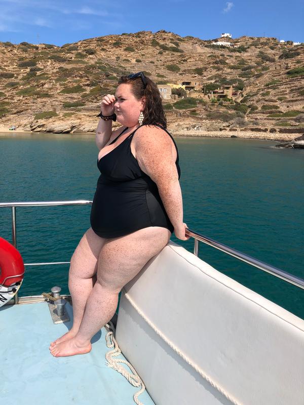 Bought this right before my trip to Greece and loved it. The deep v neckline definitely shows off the girls so if you’re uncomfort...Swimsuit for a shape that's not average