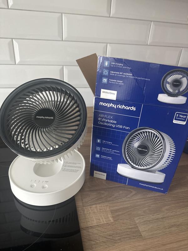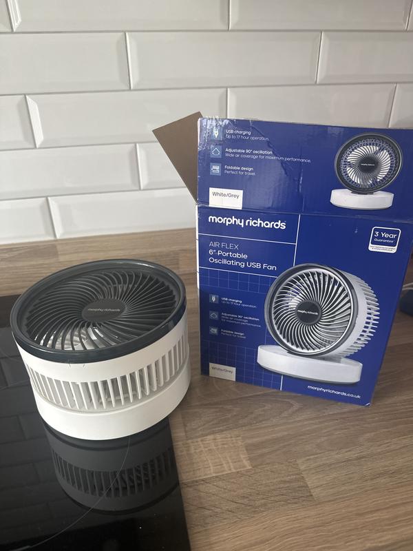 Morphy Richards Air Flex 6in Portable Oscillating USB Fan White/Grey