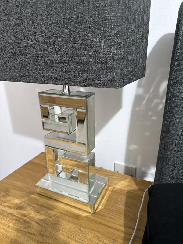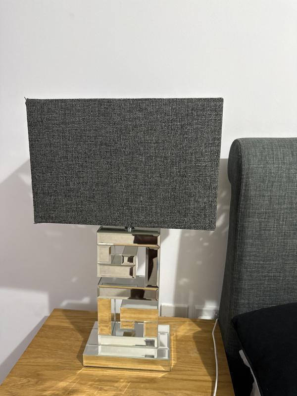 The lamp is just beautiful, had lamp shade i love and was looking for base amd is just what I needed .Greek key mirrored lamp.