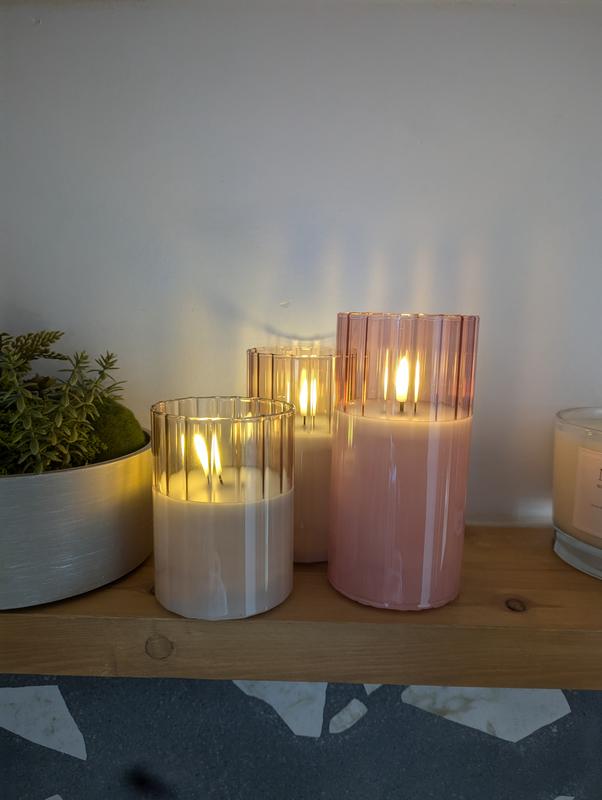 Set of 3 Ribbed Glass LED Candles