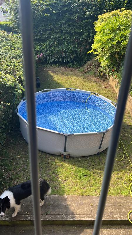 Great pool easy set up and sturdy looks a lot bigger than the 10ft inflatable top oneBraw pool